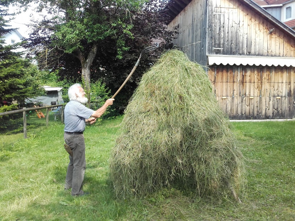 Einmal im Monat greift im Betzinger Museum Im Dorf der Museumsbauer zum historischen Werkzeug. Heinz-Jürgen von Boetticher zeigt und erklärt dabei alte Techniken und Arbeitsweisen. Für den Juni hat sich der gelernte Landwirt die Heuernte auf historische Weise vorgenommen. In seiner Jugend hat er selbst noch wie die Ahnen Heu gemacht und gibt nun dieses Wissen gerne weiter. Im Museumsgarten wurde extra ein Stück Wiese nicht gemäht, so dass die ganze Produktion vom stehenden Gras bis zum fertigen Heu nachvollzogen werden kann. Auf Schlepper und Ballenpresse kann von Boetticher dabei getrost verzichten: gemäht wird mit der Sense, das Wenden erfolgt mit der Gabel, und das geschnittene Gras wird auf so genannten „Heinzen“ zum Trocknen aufgehängt. Bei gutem Wetter beginnt die Heuernte am Sonntag, 17. Juni um 11 Uhr. Nicht nur Zuschauer, sondern auch alle, die gern selbst mit anpacken wollen, sind herzlich eingeladen.